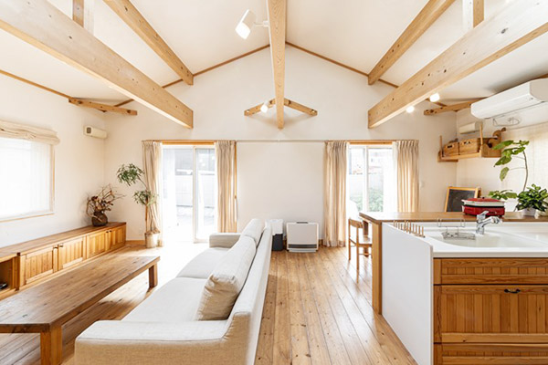 在来工法は、柱・梁・筋交いなどで住まいを支える木造建築の工法です。